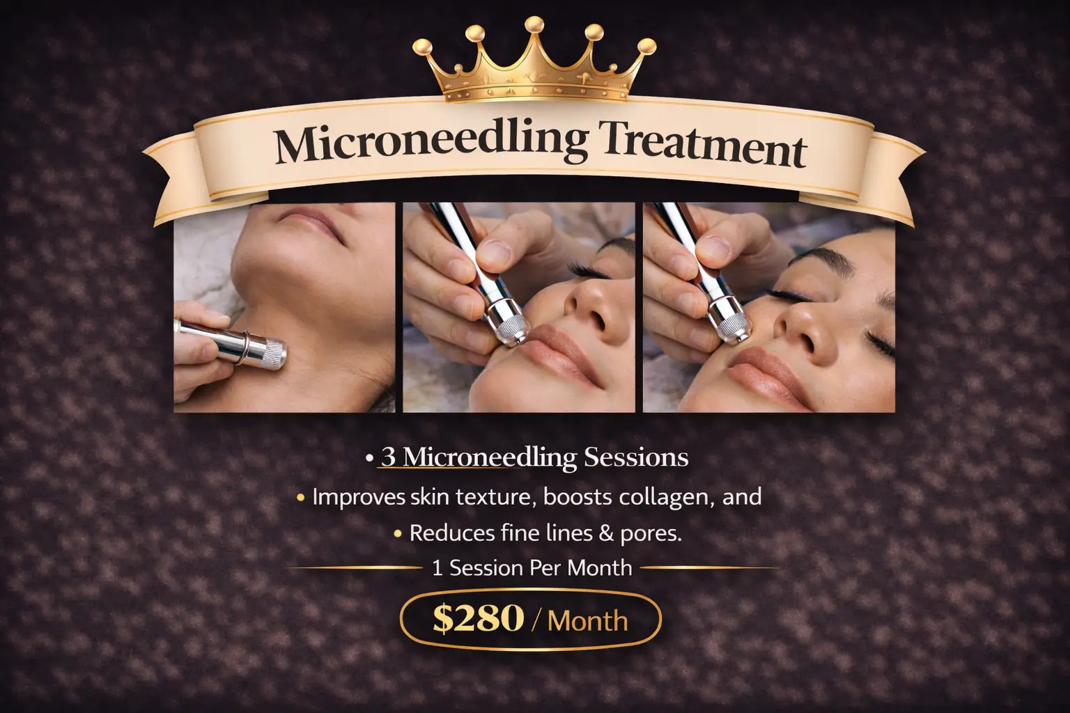 This 3-session treatment uses micro needling to stimulate collagen production and improve skin texture, reducing fine lines and enlarged pores. Three sessions ensure a complete treatment to achieve your desired skin results. One session per month (Recommended).
